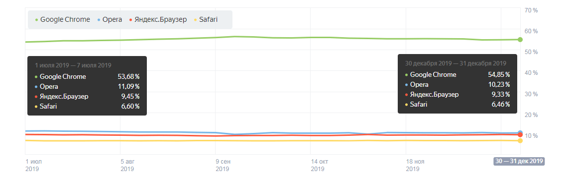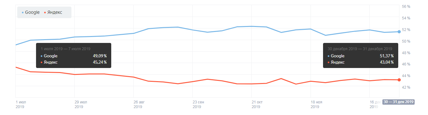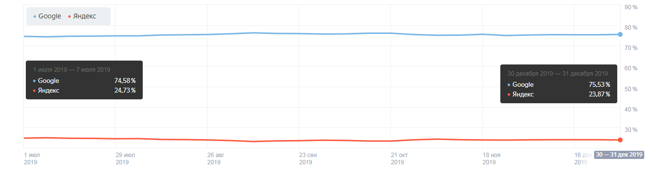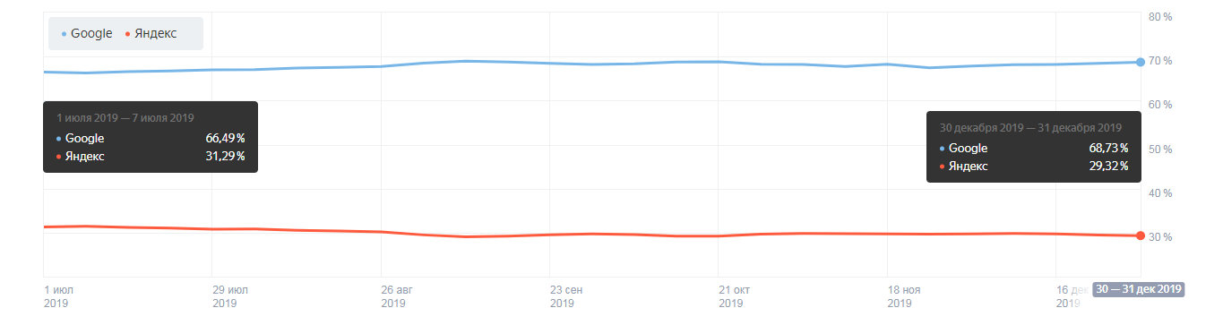 Популярные поисковые системы и браузеры во 2 полугодии 2019 года в Беларуси