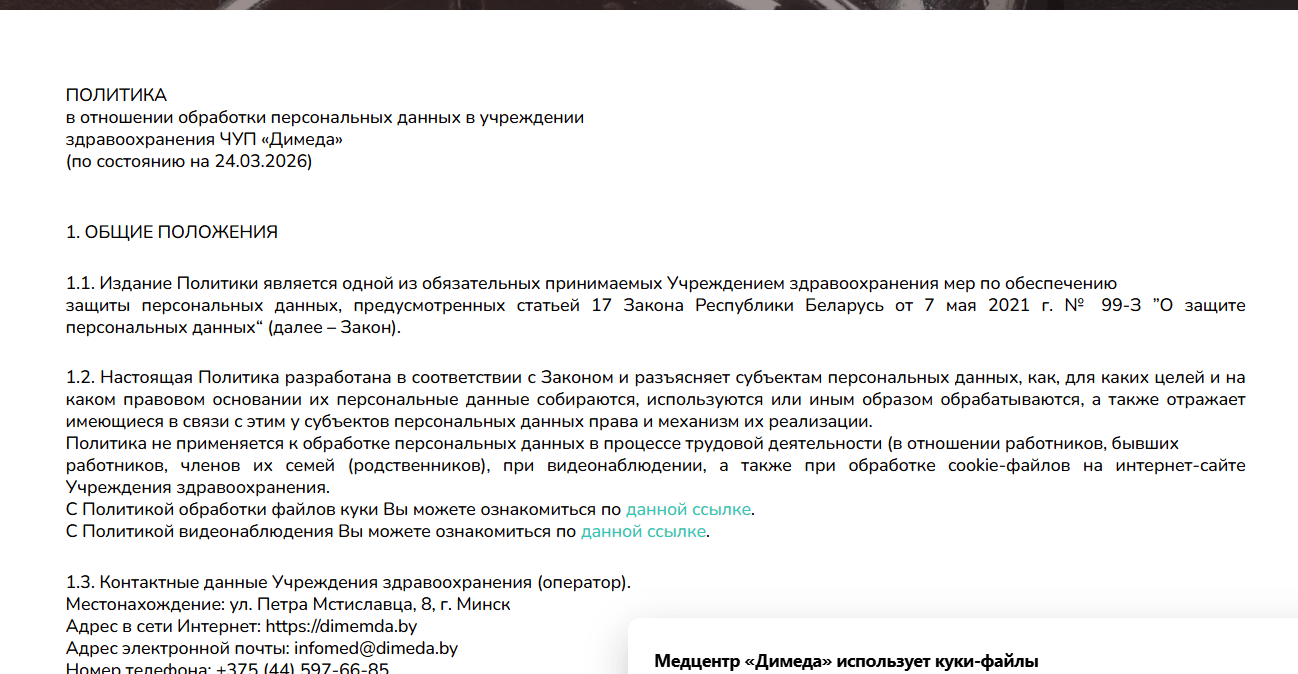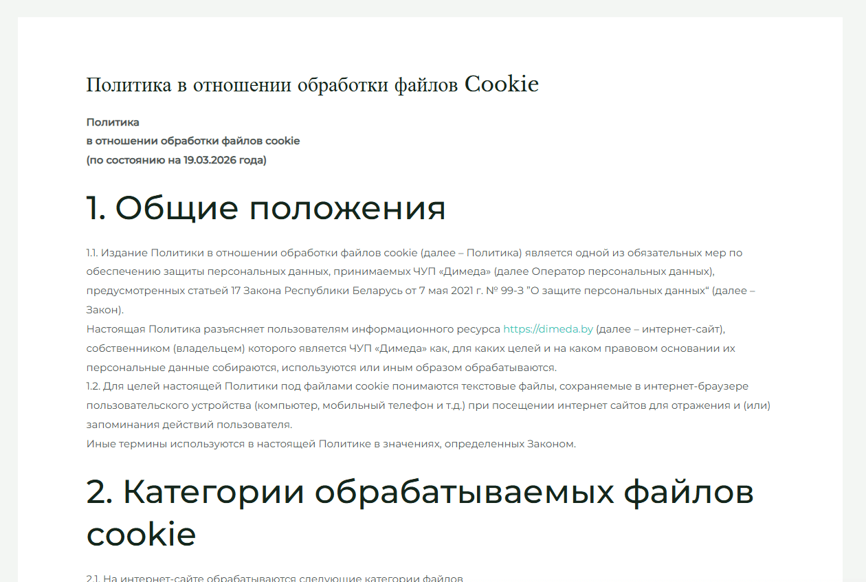Настройка системы информирования о файлах cookie для сайта dimeda.by